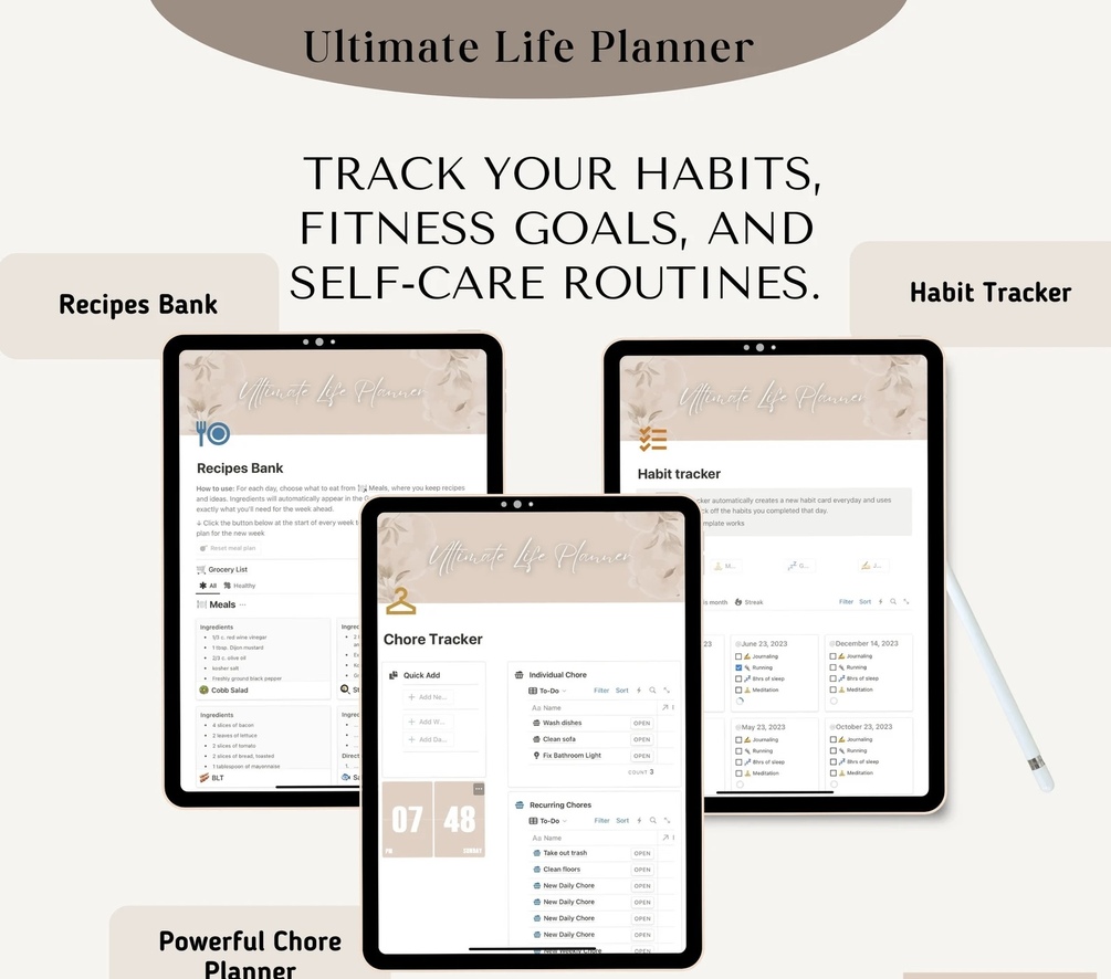 With the Ultimate Life Planner, you get a comprehensive approach to managing your time, money, habits, health, and more. Whether you’re a busy professional, a student, a parent, or someone juggling multiple responsibilities, this planner is your go-to tool for building a more organized, fulfilling life.