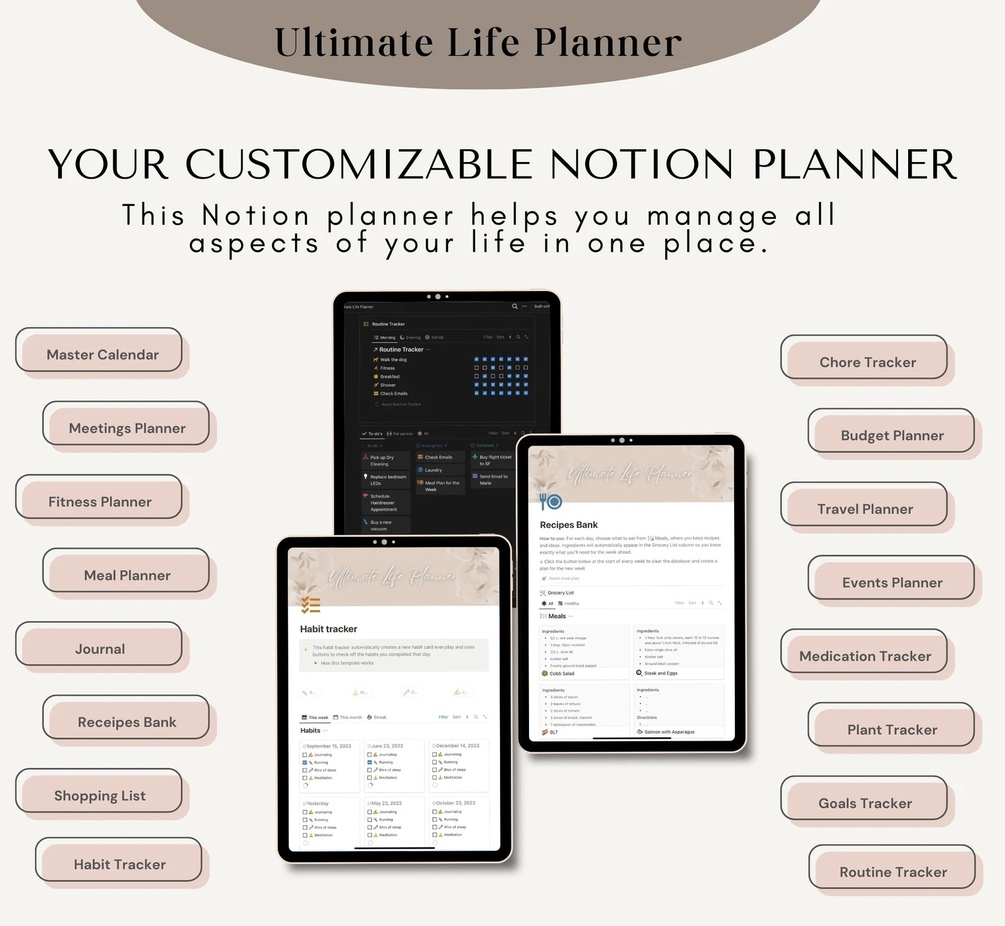 Ready to take charge of your life, crush your goals, and build sustainable habits? The Ultimate Life Planner is your all-in-one tool for creating a life of focus, discipline, and balance. It’s the only planner you’ll ever need to master every aspect of your day, from your budget to your fitness routine, meal planning to travel goals, and beyond.